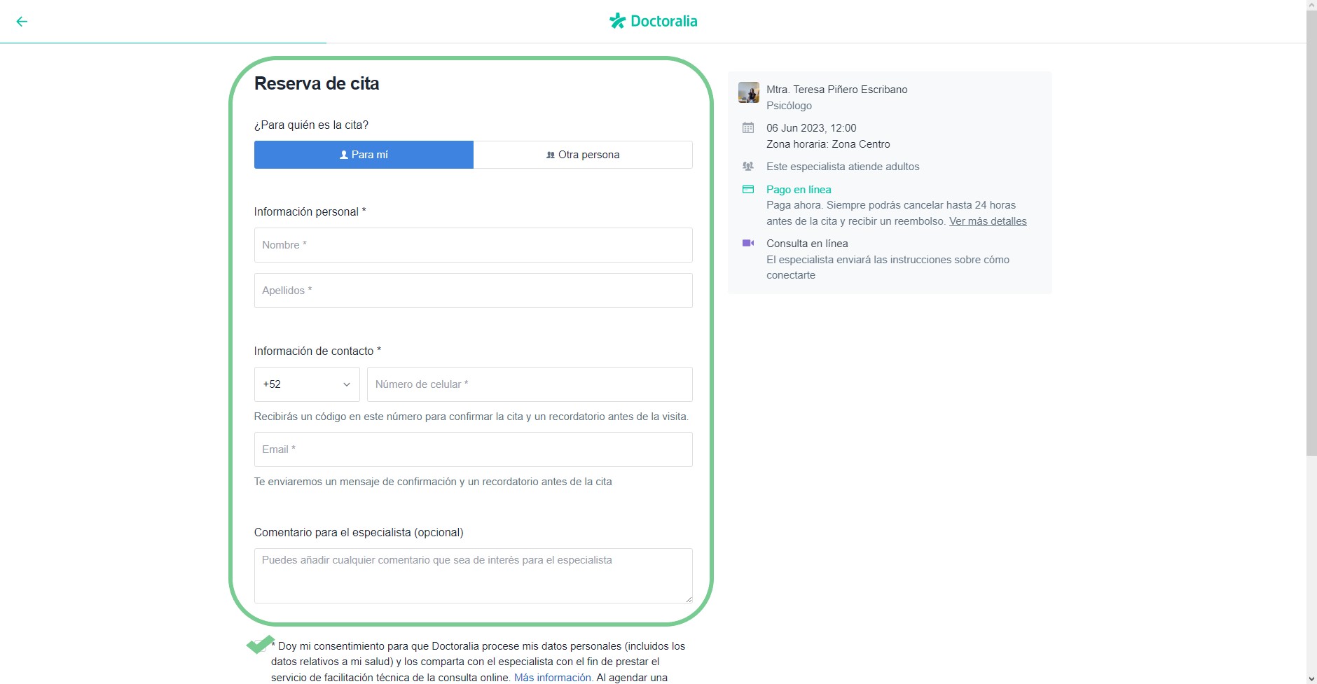 La reserva de cita y pago se realizan a través de la plataforma de Doctoralia.com.mx de la cual formamos parte. Aseguramos de esta manera que sea un proceso de pago seguro y sencillo.